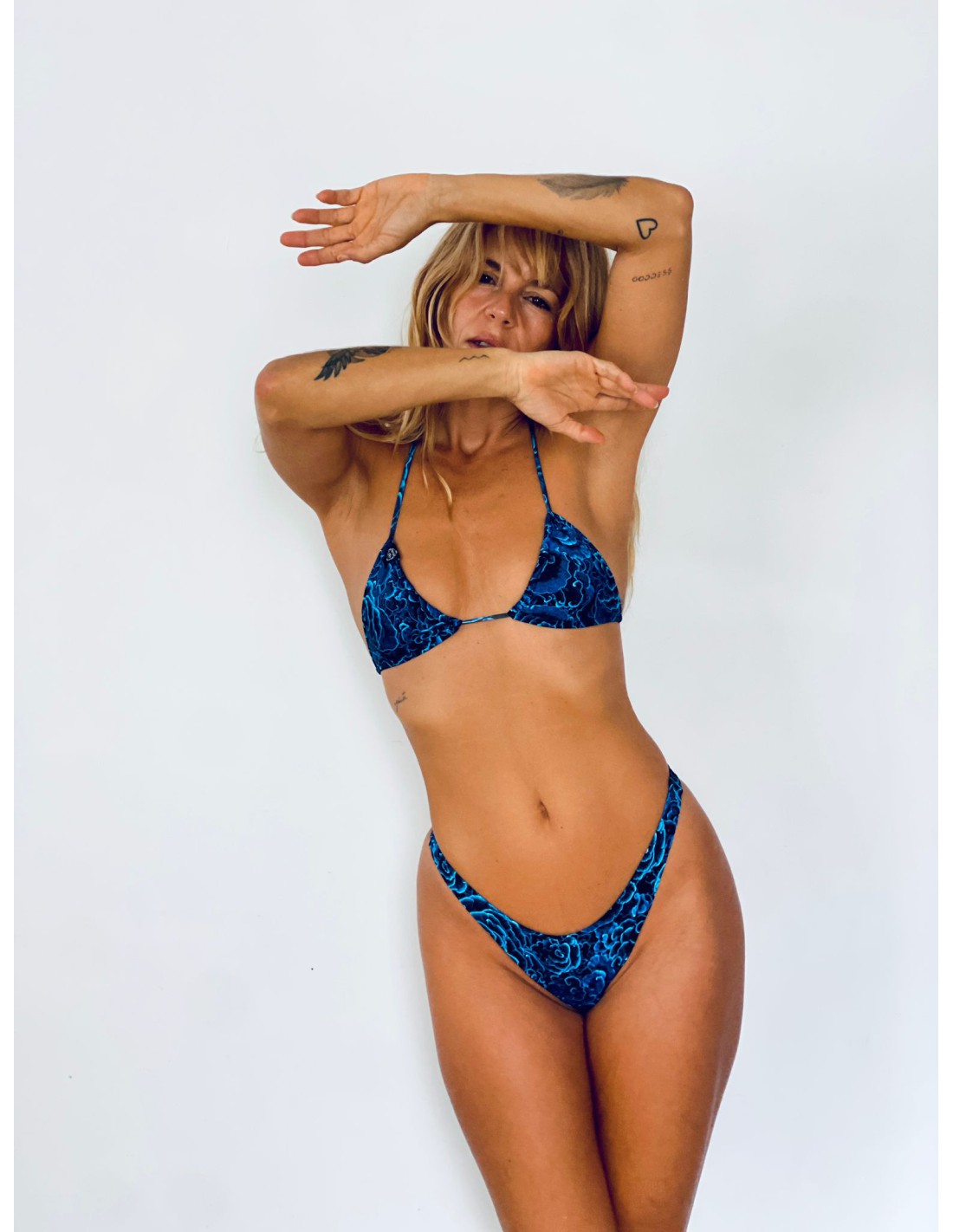Top de Bikini brasileño a juego con nuestra braga mini brasil. Forma triangular y de cortina, con lazadas finas para atar de varias maneras. Top versátil perfecto para minimizar las marcas de sol.