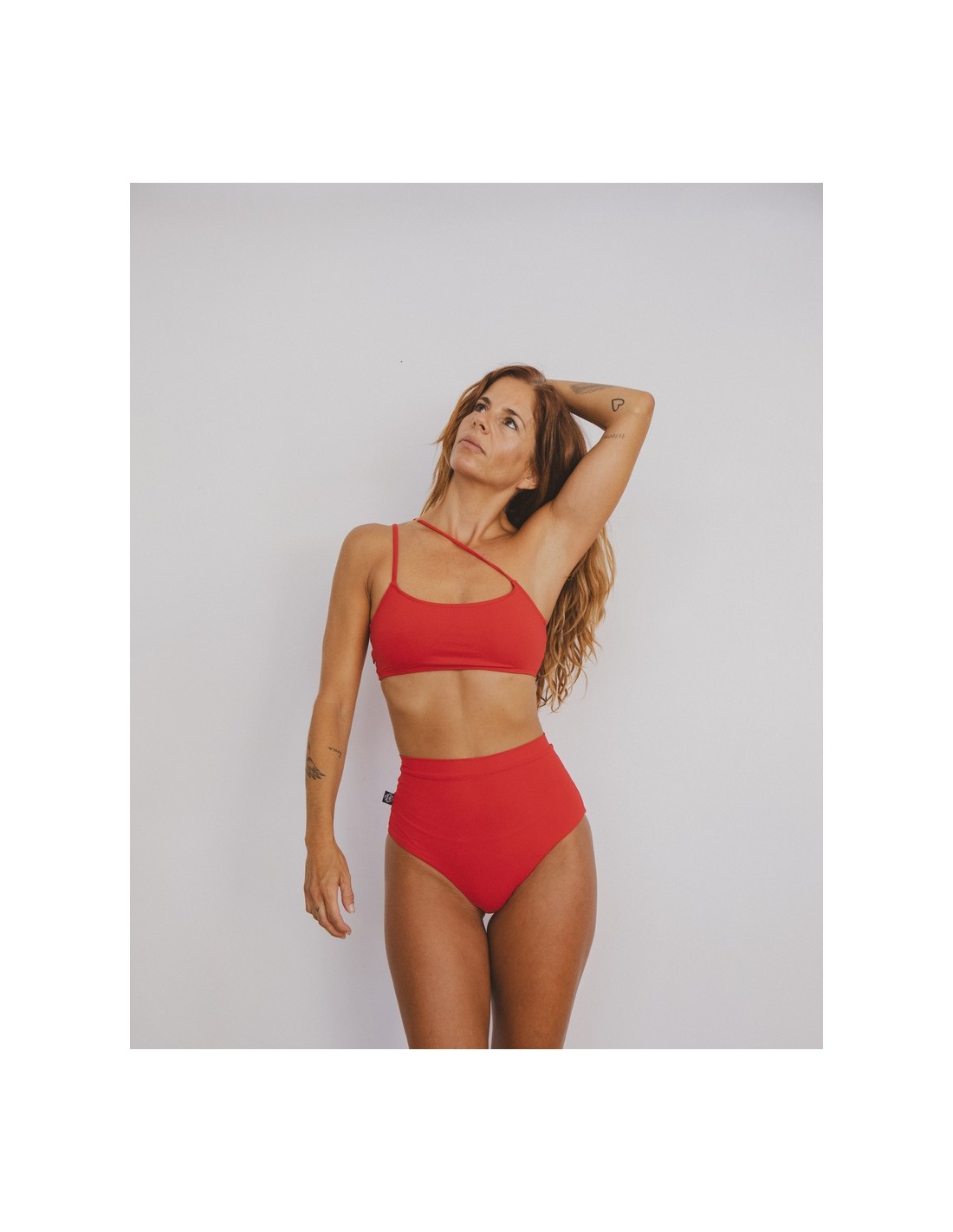 Uno de nuestros Bestsellers. Braga de bikini de talle alto y corte brasileño con costuras invisibles. Doble lycra para mayor sujeción y combinación. Braga convertible en top asimétrico.