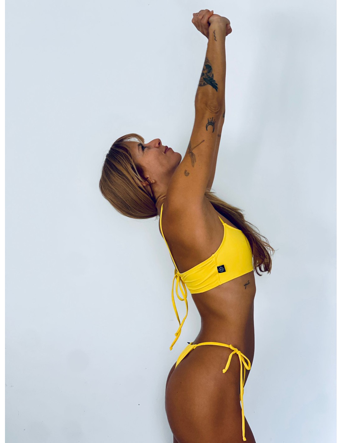 Nuestro top básico de bikini Best Seller. Top deportivo con escote redondo y tiras finas ajustables. Espalda cerrada y posibilidad de jugar con las tiras para usar de maneras diferentes. Versátil y cómodo.