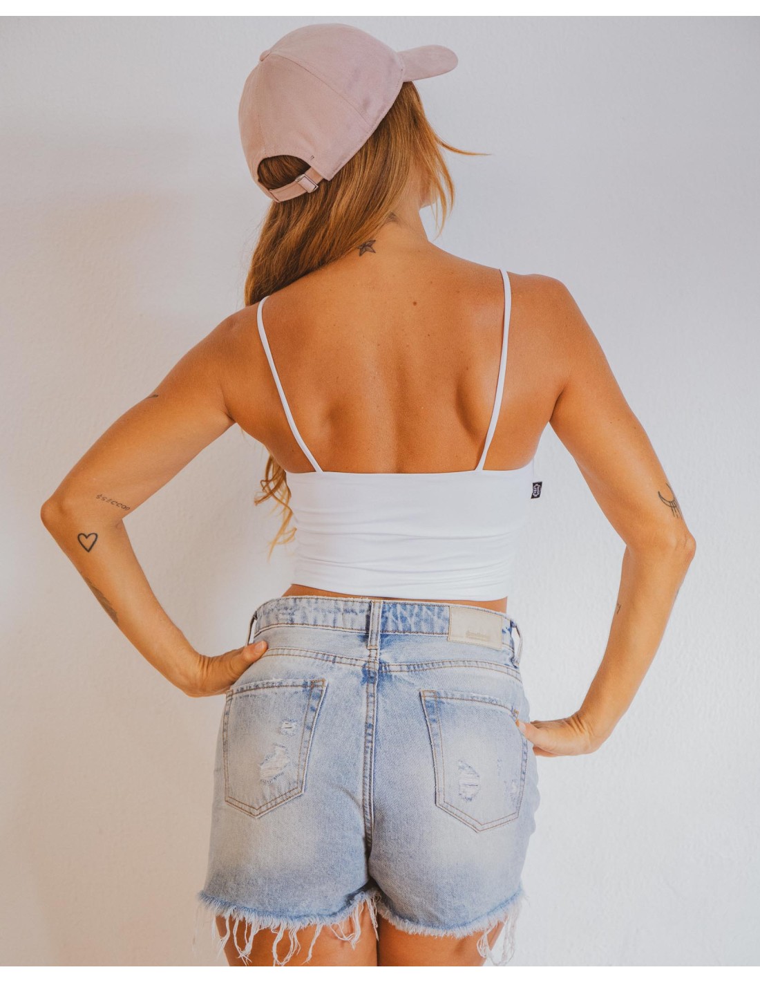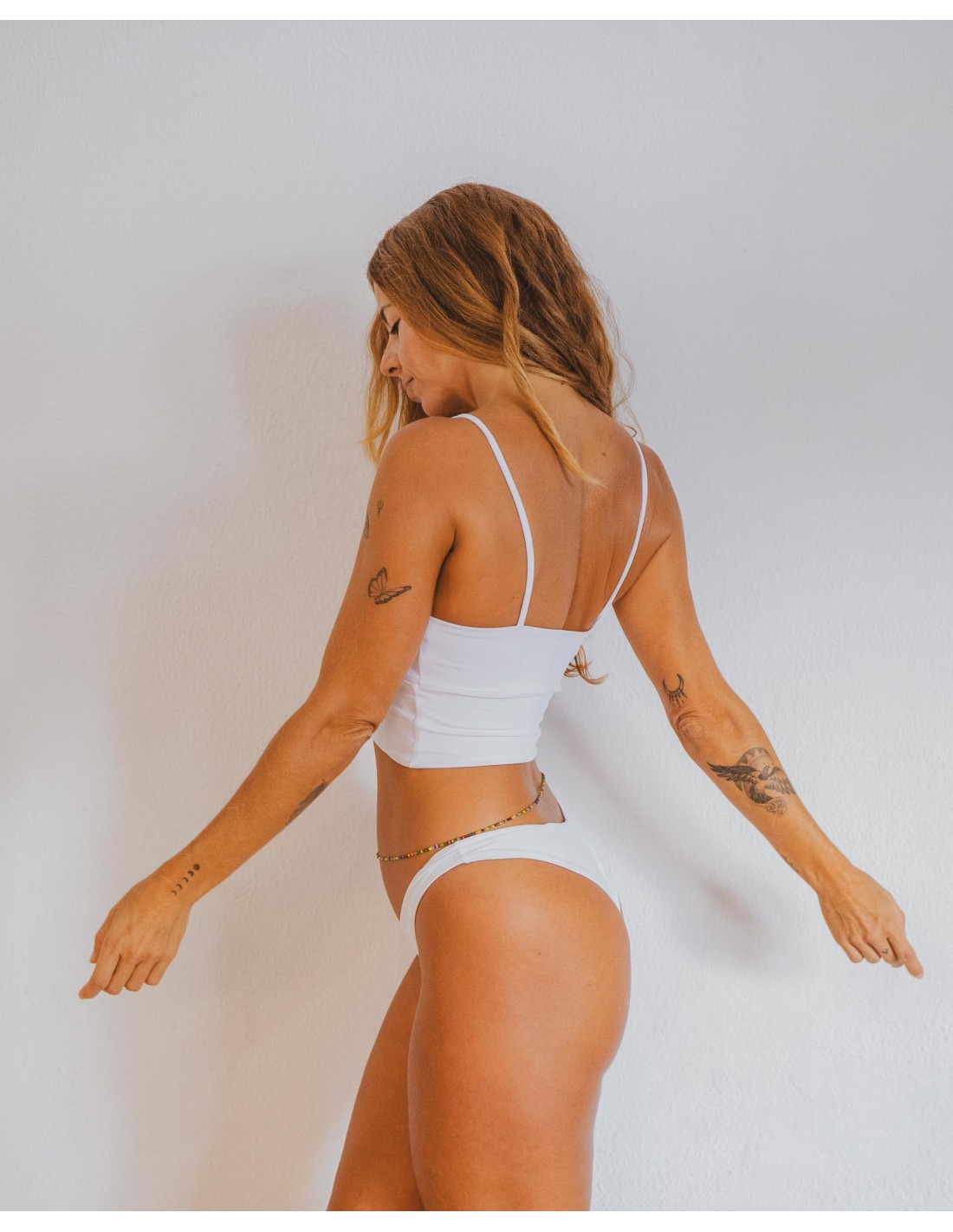 Best Seller. Top de bikini reversible con escote en forma de triángulo y fajín debajo del pecho. Top cerrado no ajustable.