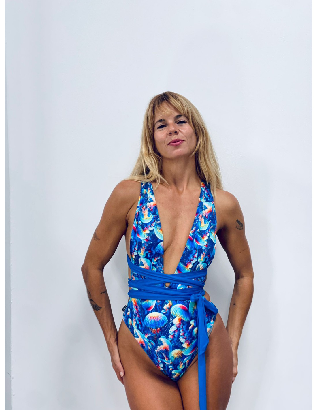 Pensado para acompañarte dentro y fuera del agua, es un diseño envolvente y versátil: puedes llevarlo más escotado o más recogido según cómo ajustes las tiras. Resultado: una pieza que abraza, estiliza y se adapta a cada cuerpo con el sello de diseño emocional de Agüita.